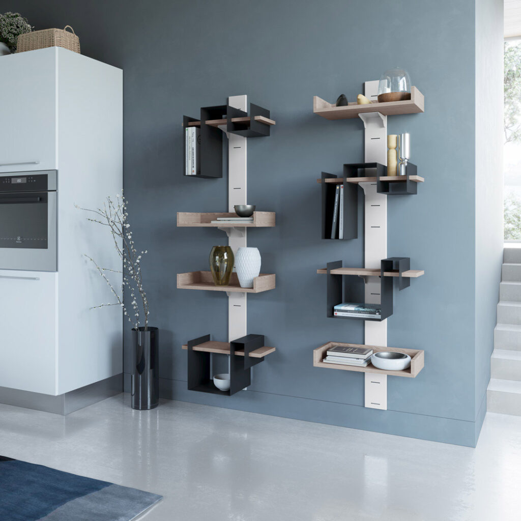 I ripiani sono di spessore 18 mm e sono dotati di reggi ripiano incorporato con dispositivo antisganciamento; essi possono essere anche in vetro temperato (spessore 6 mm) molati sui bordi.